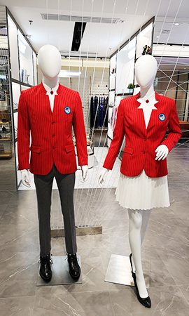 2018年11月第一屆中國國際進口博覽會,一套紅色志愿者服裝尤為引人注目。五星造型中式領口點綴四葉草紐扣別致新穎,中國紅上裝搭配灰、白色褲裙明快鮮亮,筆挺的西服、靈動的裙擺、精致的工藝,彰顯著志愿者的專業、熱情、與活潑。而這些,正是由上服智源成衣為志愿者量身打造的。